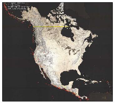 - Earthquake epicenters on a shaded relief base map, excellent for teaching and learning about the relationship of North and Central America earthquakes to landforms, rivers, oceans, and land masses. Includes epicenters above 5.0 in magnitude, with symbols color coded to indicate shallow and deep earthquakes. Base map reprinted with permission of Raven Maps and Images. Map size 45.5" x 42".