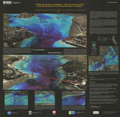 - San Francisco Bay in Northern California is one of the largest and most altered estuaries within the United States. The sea floor within the bay as well as at its entrance is constantly changing due to strong tidal currents, aggregate mining, dredge disposal, and the creation of new land using artificial fill. Understanding this dynamic sea floor is critical for addressing local environmental issues, which include defining pollution transport pathways, deciphering tectonics, and identifying benthic habitats. Mapping commercial interests such as safe ship navigation and dredge disposal is also significantly aided by such understanding. This poster shows views of the sea floor in west-central San Francisco Bay around Alcatraz and Angel Islands, underneath the Golden Gate Bridge, and through its entrance from the Pacific Ocean. The sea floor is portrayed as a shaded relief surface generated from the multibeam data color-coded for depth from light blues for the shallowest values to purples for the deepest.
