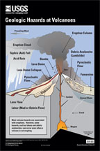 - This poster displays an erupting volcano and depicts possible geologic hazards. Most volcano hazards are associated with eruptions, however, some hazards, such as lahars and debris avalanches, can occur even when a volcano is not erupting. As population density increases in regions of active or potentially active volcanoes, mankind must become increasingly aware of the hazards and learn not to "crowd" the volcanoes. This poster is a great learning tool for schools, conferences, and special events.