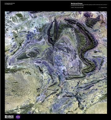 - The MacDonnell Ranges are a band of mountains spanning Australia's arid interior. Only a portion of the Ranges can be seen in this image.