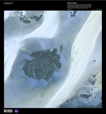 - The mountainous outcrops of Jebel Auenat rise 6000 feet above the barren, uninhabited plains of the Libyan Desert. The frontiers of Libya, Egypt and Sudan meet amidst the rugged granite of Jebel Auenat. The mountains are remnants of an ancient granitic dome. Rivers of sand meander around them, swept across the desert pavement by northeasterly winds.