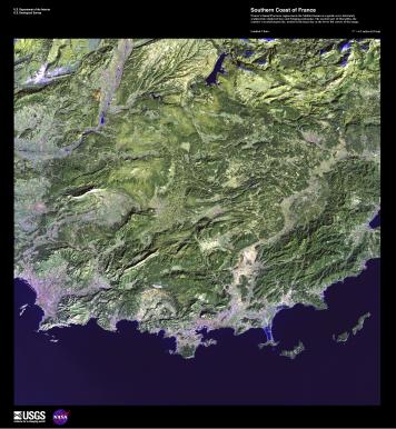 - France's famed Provence region meets the Mediterranean as a gentle curve intricately sculpted into sheltered bays and fringing peninsulas. The ancient port of Marseilles, the country#s second largest city, nestles in the large bay at the lower left corner of the image.