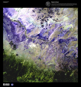 - In the American Southwest, transitions from one ecosystem to another can be dramatic and abrupt. This certainly is true in northern Arizona, USA, where the parched Painted Desert, shown here in a palette of purples, adjoins Sitgreaves National Forest (shades of green), a realm of pine woodlands with abundant wildlife. Within the Painted Desert lie the Hopi Buttes, a field of ancient volcanic cones, seen here as a scattering of dark, circular shapes near the top of the image.
