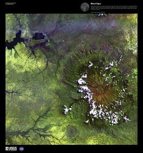 - Clouds encircle the lofty rim of Africa's Mount Elgon, a huge, long-extinct volcano on the border between Uganda and Kenya. The solitary volcano has one of the world's largest intact calderas, a cauldron-like central depression. The caldera is about 6.5 kilometers (4 miles) across and formed following an eruption, when the emptied magma chamber collapsed under the weight of volcanic rock above it.