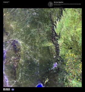 - Straight highways fan out like spokes on a wheel from the Argentine city of San Luis. To the right of the city are croplands that resemble colorful confetti. Founded in 1594, San Luis lies at the tip of the Sierra de San Luis and is largely surrounded by flat-to-rolling fertile plains.
