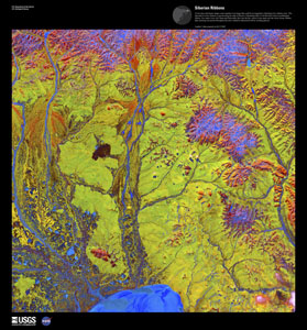 - Vivid colors and bizarre shapes come together in an image that could be an imaginative illustration for a fantasy story. This labyrinth of exotic features is present along the edge of Russia's Chaunskaya Bay (vivid blue half circle) in northeastern Siberia. Two major rivers, the Chaun and Palyavaam, flow into the bay, which in turn opens into the Arctic Ocean. Ribbon lakes and bogs are present throughout the area, created by depressions left by receding glaciers. Collection: Earth as Art 3 Source: Landsat 5 Scale: KML: View KML Download: JPG TIF Readme: View readme.txt