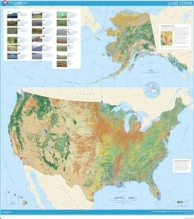 - This map shows the physical materials at the surface of the United States. Its design distinguishes between nineteen types of land cover including developed lands, wetlands, forests, farmed lands, and barren regions. Several classes of land cover found only in Alaska are shown. The data used to illustrate land cover comes from many individual images delivered by the Landsat satellite. This data is particularly useful for observing changes to the land surface over time. Two additional features make the map more useful. Small "thumbnail" maps that indicate where to find each land cover type on the larger map are included. Photographs that exemplify each land cover class are also shown. All States, the District of Columbia, Puerto Rico, and the U.S. Virgin Islands are mapped at the same scale.