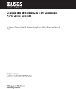 The Bailey, Colo. 1:100,000-scale quadrangle lies within two physiographic and geologic provinces in central Colorado: 1) the Front Range and 2) South Park. Most of the Front Range is composed of Proterozoic rocks ranging in age from 1,790 Ma to 1,074 Ma. Along the eastern flanks and within the Denver Basin, sedimentary rocks ranging from Pennsylvanian to Cretaceous are deformed and steeply tilted to the east. Upper Cretaceous through Paleocene rocks were deposited in the foreland (that is, the Front Range eastern flank) and hinterland (that is, South Park) of this thrust and reverse fault system developed during the Late Cretaceous to Paleocene Laramide orogeny. Within South Park, rocks range in age from Pennsylvanian to Miocene with Quaternary deposits indicating tectonic subsidence of the basin. These rocks record five major geologic episodes: 1) the Paleozoic Anasazi uplift that formed the Ancestral Rockies, 2) the Late Cretaceous to Paleocene Laramide orogeny, 3) widespread Eocene to Oligocene volcanism, 4) Oligocene–Quaternary tectonics, and 5) Quaternary glacial episodes.