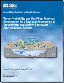 - Executive Summary Arizona is located in an arid to semiarid region in the southwestern United States and is one of the fastest growing States in the country. Population in Arizona surpassed 6.5 million people in 2008, an increase of 140 percent since 1980, when the last regional U.S. Geological Survey (USGS) groundwater study was done as part of the Regional Aquifer System Analysis (RASA) program. The alluvial basins of Arizona are part of the Basin and Range Physiographic Province and cover more than 73,000 mi², 65 percent of the State’s total land area. More than 85 percent of the State’s population resides within this area, accounting for more than 95 percent of the State’s groundwater use. Groundwater supplies in the area are expected to undergo further stress as an increasing population vies with the State’s important agricultural sector for access to these limited resources. To provide updated information to stakeholders addressing issues surrounding limited groundwater supplies and projected increases in groundwater use, the USGS Groundwater Resources Program instituted the Southwest Alluvial Basins Groundwater Availability and Use Pilot Program to evaluate the availability of groundwater resources in the alluvial basins of Arizona. The principal products of this evaluation of groundwater resources are updated groundwater budget information for the study area and a proof-of-concept groundwater-flow model incorporating several interconnected groundwater basins. This effort builds on previous research on the assessment and mapping of groundwater conditions in the alluvial basins of Arizona, also supported by the USGS Groundwater Resources Program. Regional Groundwater Budget The Southwest Alluvial Basins-Regional Aquifer System Analysis (SWAB-RASA) study produced semiquantitative groundwater budgets for each of the alluvial basins in the SWAB-RASA study area. The pilot program documented in this report developed new quantitative estimates of groundwater budget components using recent (2000–2007) data and methods of data analysis. Estimates of inflow components, including mountain-front recharge, incidental recharge from irrigation of agriculture, managed recharge from recharge facilities, interbasin underflow from upgradient basins, and streamflow losses, are quantified for recent time periods. Mountain-front recharge is the greatest inflow component to the groundwater system and was estimated using two methods: a basin characteristic model and new precipitation information used in a previously developed regression equation. Annual mountain-front recharge for the study area for 1940–2007 estimated by the two methods is 730,000 acre-ft for the basin characteristic model and 643,000 acre-ft for the regression equation, representing 1.5 percent and 1.3 percent of precipitation, respectively. Outflow components, including groundwater withdrawals, evapotranspiration, and interbasin flow to downgradient basins, are also presented for recent time periods. Groundwater withdrawals accounted for the largest share of the water budget, with nearly 2.4 million acre-ft per year withdrawn from the study area in recent years. Evapotranspiration from groundwater was estimated at nearly 1.3 million acre-ft per year for the study area using a newly d eveloped method incorporating vegetation indices from satellite images and land cover information. For water-budget components with temporal variation that could be assessed from available data, estimates for intervening time periods since before development were also developed. An estimate of aquifer storage change, representing both gains to and losses from the groundwater system since before development, was derived for the most developed basins in the study area using available estimates of groundwater-level changes and storage coefficients. An overall storage loss of 74.5 million acre-ft was estimated for these basins within the study area. Demonstration of a Multibasin Groundwater-Flow Model A proof-of-concept regional groundwater-flow model was developed to determine if large, multibasin models can be joined and solved, and to test groundwater budget components developed in the first part of this study. This model builds upon previous Federal and State agency groundwater investigations in the area completed at differing scales. Steady-state groundwater flow was modeled for an area that encompasses more than 2,900 mi², including the corridor of connected aquifers extending from the Santa Cruz Basin near the Tubac streamgage north of Nogales, Arizona, through the Tucson and Pinal Active Management Areas to the north. The connected aquifers of Avra and Altar Valleys, the Tucson metropolitan area, and the heavily agricultural area of the Pinal Active Management Area are all included in the modeled area. Steady-state groundwater flow was modeled using information on average in-place recharge and runoff produced during the development of the groundwater budgets. Planned future model refinements include transient simulations based on groundwater-budget components for time periods after widespread groundwater development.