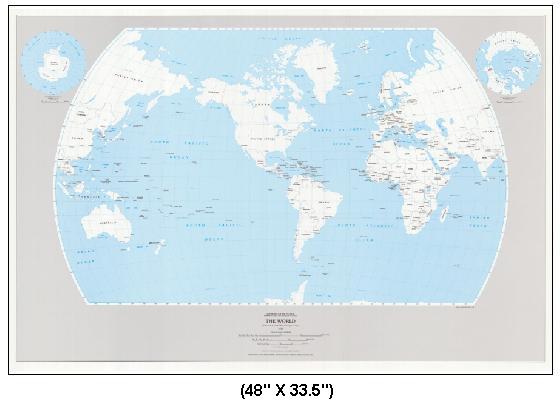 - The USGS publishes two outline maps of the world. Both are printed in two colors and use the Van der Grinten projection centered on the Americas. The outline format makes them useful as base maps on which you can compile and display special information. This 48"x33.5" map shows the boundaries and names of nations. It shows their capitals and major cities. Map scale is 1:40,000,000 (1 inch equals about 631 miles).